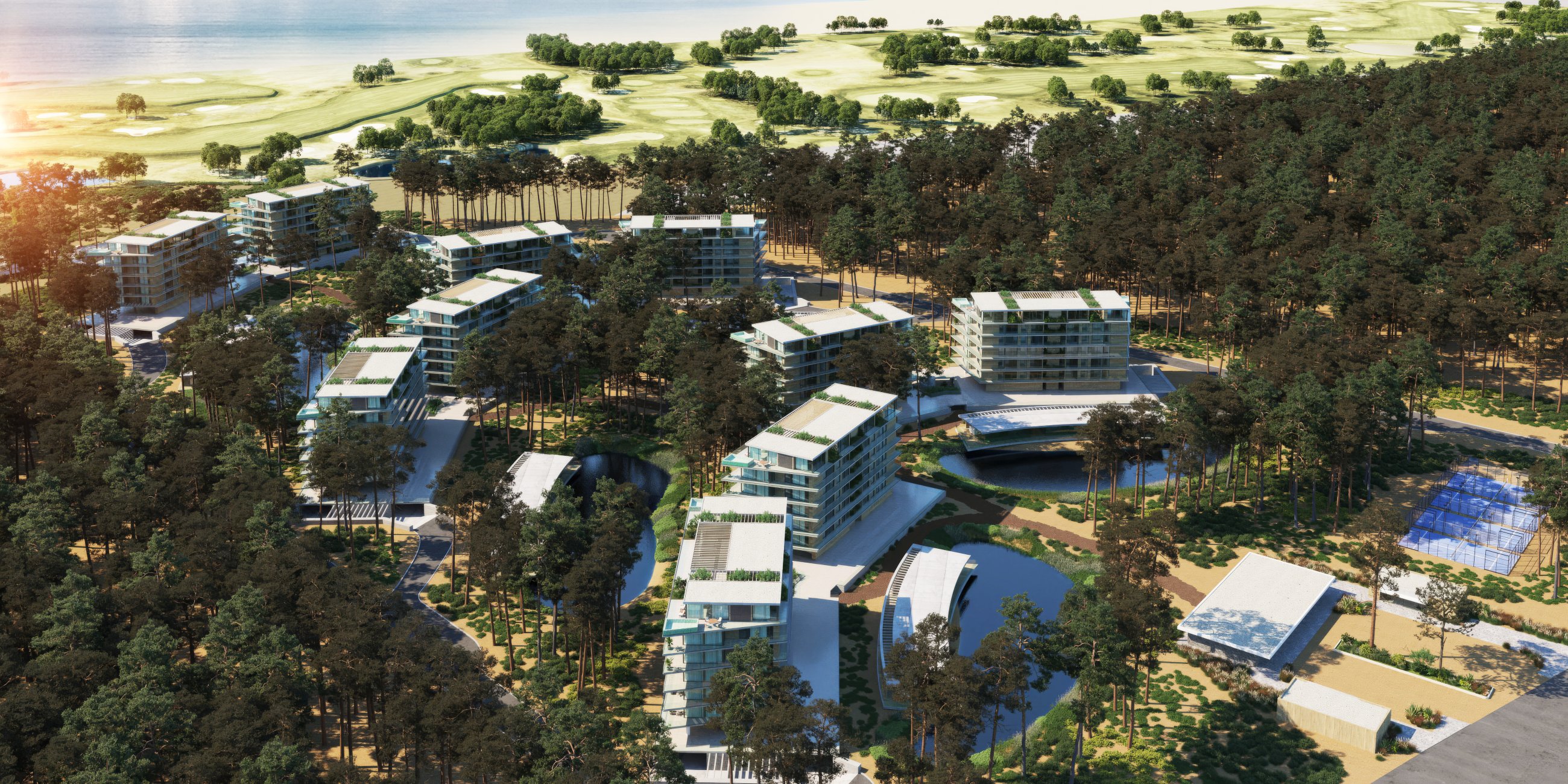 El proyecto está a cargo del estudio de arquitectura BMA. El barrio contará con 100 metros de playa con balneario privado y una cancha de golf de 18 hoyos desarrollada en conjunto con Frankie Bunge, constructor y diseñador especialista en campos de golf.